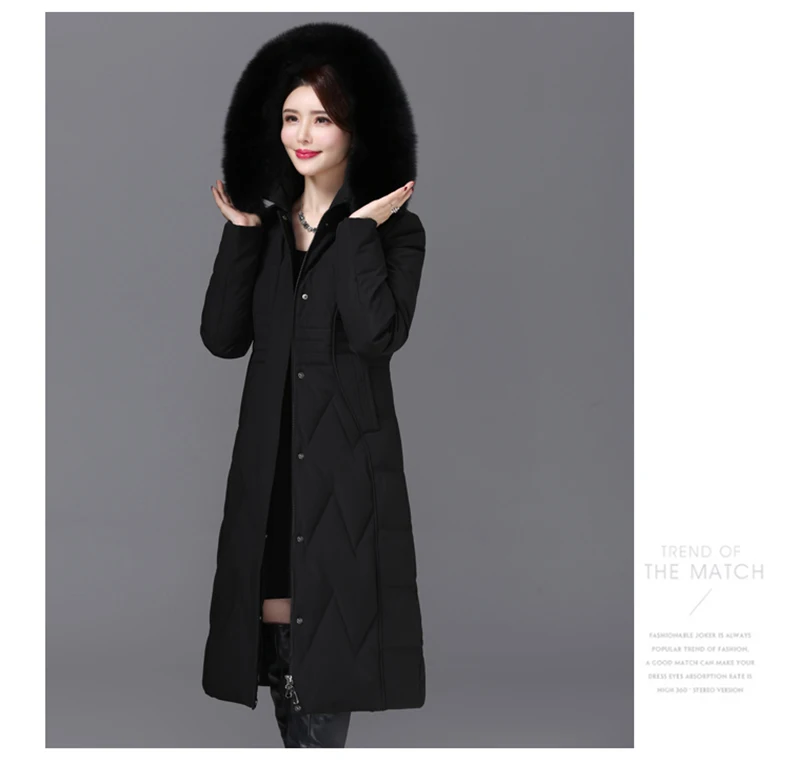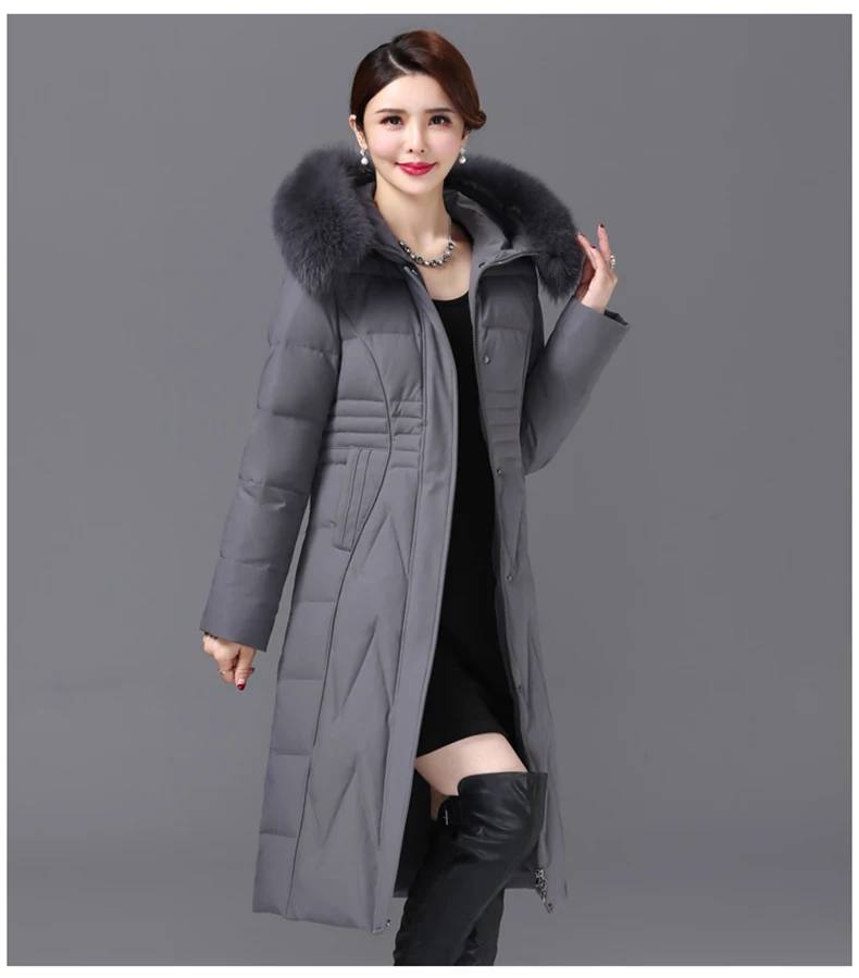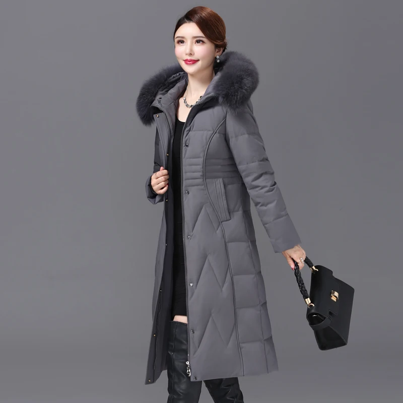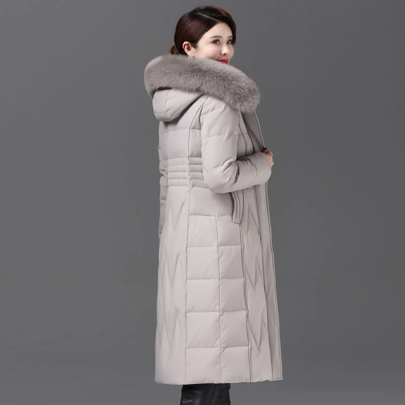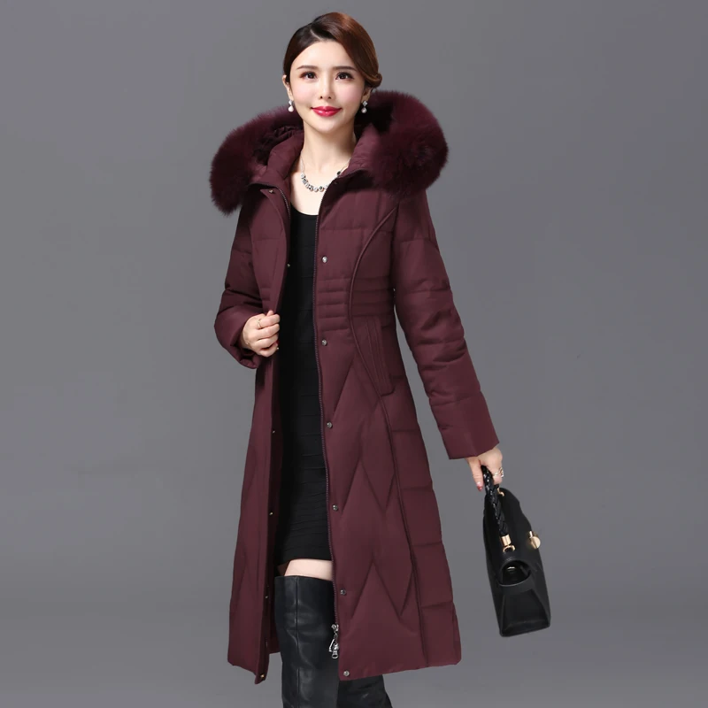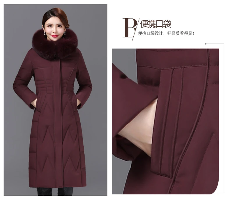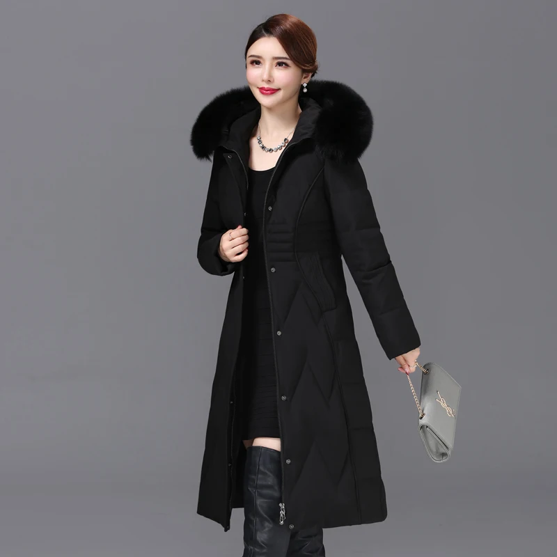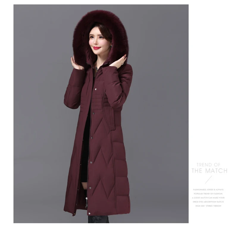 Shengyu Boya Middle-Aged and Elderly Slim Over-The-Knee Long down Jacket for Women, New Thickened Coat with Detachable Hood