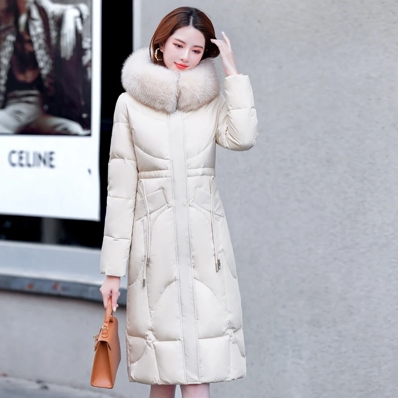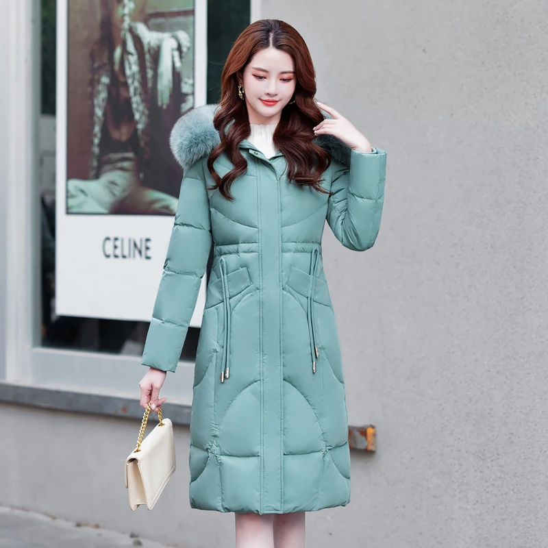 whether full opening: Yes High-concerned chemical: None Craft of Weaving: Other Release Date: Winter 2024 Season: Winter Age: Senior Place Of Origin: China (mainland) Weight: 1.5 Style: Office Lady Down Weight: 150g-200g Hooded: Yes Material: POLYESTER Down Content: 90% Filling: White duck down Sleeve Length(cm): Long Sleeves Thickness: Thick Type: Slim Closure Type: Zipper Pattern Type: Solid Clothing Length: long(26+inch) Gender: Women Origin: Mainland China Brand Name: NoEnName_Null CN: Hebei