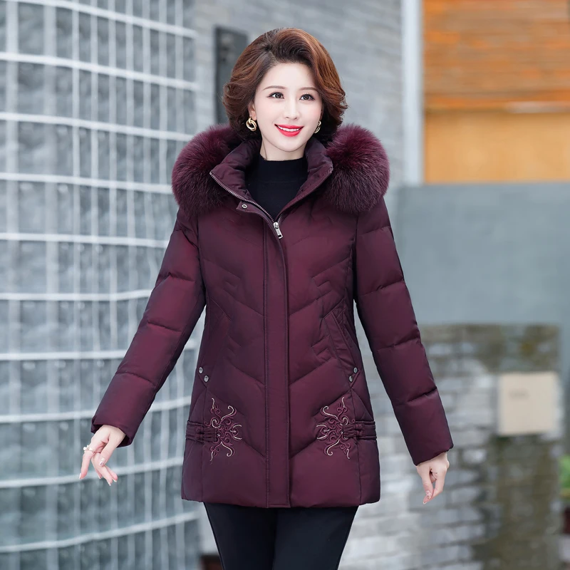 Shengyu Boya Mother’s Clothing Middle-Aged and Elderly Mid-Length Short down Jacket Women’s Jacket Thickeneded New Winter Outwear Grandma Clothing